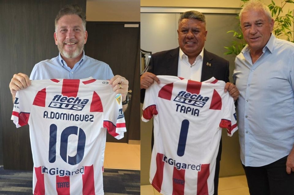 Alejandro Domínguez y Chiqui Tapia posaron con la camiseta de Unión