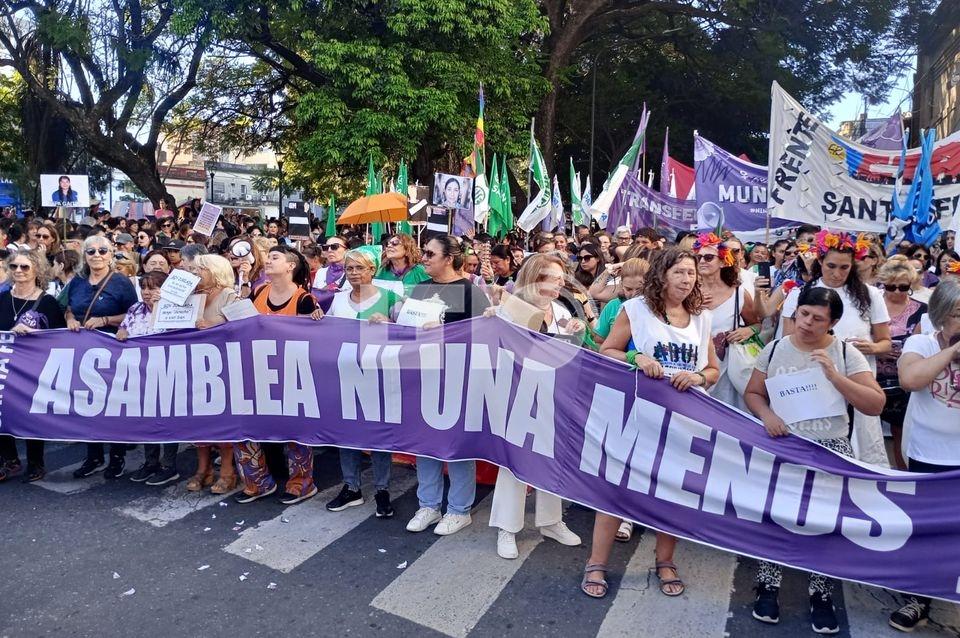 En la concentración integrantes de la Asamblea Ni Una Menos Santa Fe destacaron la situación que vive el colectivo tras la suspensión de las políticas públicas del gobierno de Javier Milei.