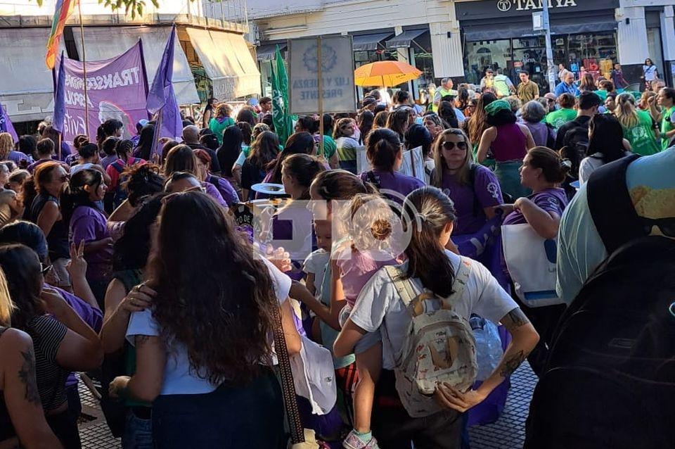 Una gran columna de mujeres marcharon este lunes desde la Plaza del Soldado hasta frente a Casa de Gobierno concretando la movilización que fue suspendida el sábado por mal tiempo.