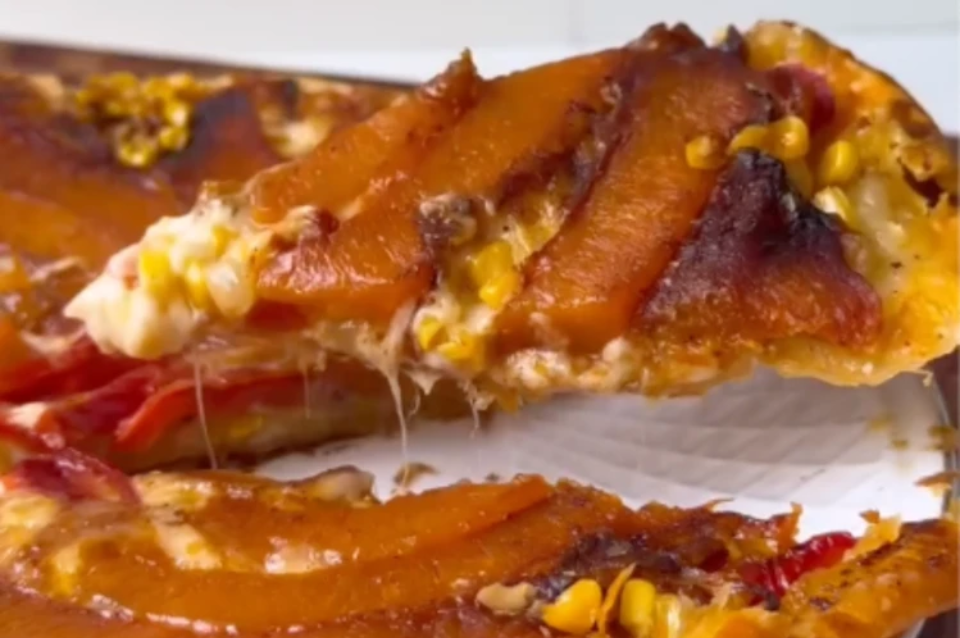 1- En una pizzera rociada con aceite, disponé los trozos de calabaza. Tiene que estar pelada y cortada en gajos. Acomodalos como armando una flor. Condimentalos y hornealos entre 15 y 20 minutos.