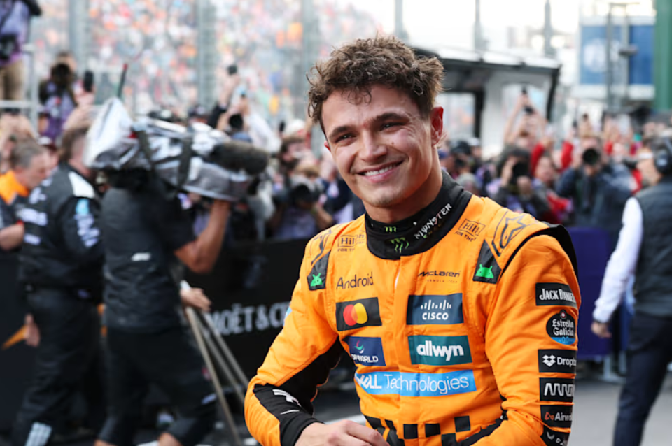 Norris controló las primeras etapas del encuentro del domingo con su compañero de equipo en McLaren, Oscar Piastri, y Max Verstappen, de Red Bull, en una pista empapada, antes de que las condiciones mejoradas permitieran un cambio a neumáticos lisos durante la segunda mitad.