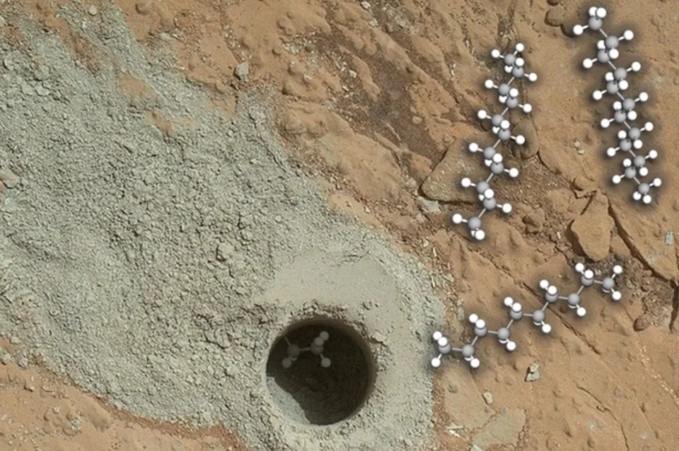 Los científicos analizaron una muestra de roca dentro del minilaboratorio de Análisis de Muestras en Marte del Curiosity y encontraron las moléculas decano, undecano y dodecano. Se cree que estos compuestos, integrados por 10, 11 y 12 átomos de carbono, respectivamente, son fragmentos de ácidos grasos conservados en la muestra.