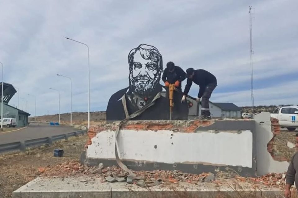 En las imágenes, que se viralizaron en las redes sociales, una excavadora y hombres con martillos neumáticos tiraron abajo la obra que representaba un homenaje al autor que registró en su saga “La Patagonia rebelde” los fusilamientos ocurridos en la región en la segunda década del siglo XX, cuando un grupo de huelguistas fueron perseguidos, torturados y deportados por pedir mejoras en sus condiciones laborales.