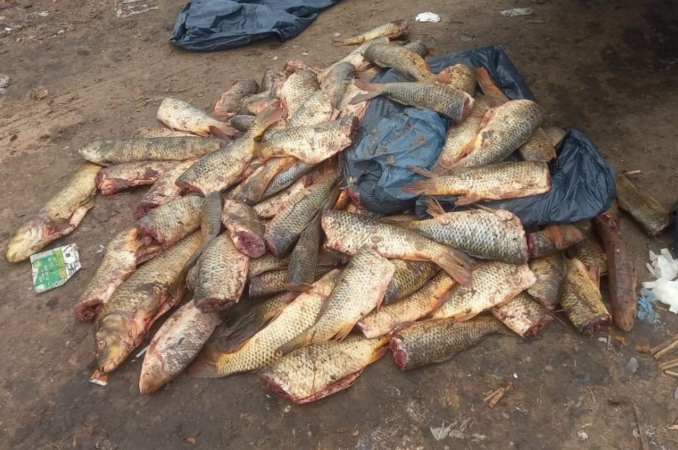 Al llegar, se encontraron con aproximadamente 60 pescados "Carpas", los cuales estaban en el piso con hielo, pero aparentemente no aptos para el consumo.