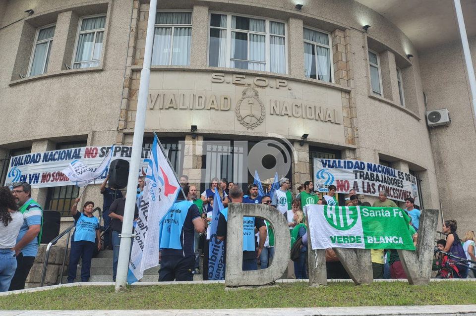 Trabajadores de Vialidad Nacional y empleados de la Asociación de Trabajadores del Estado (ATE) se movilizaron este jueves en la intersección de 27 de Febrero y Salta, en Santa Fe, en protesta contra el desfinanciamiento de organismos nacionales y la falta de definiciones salariales.