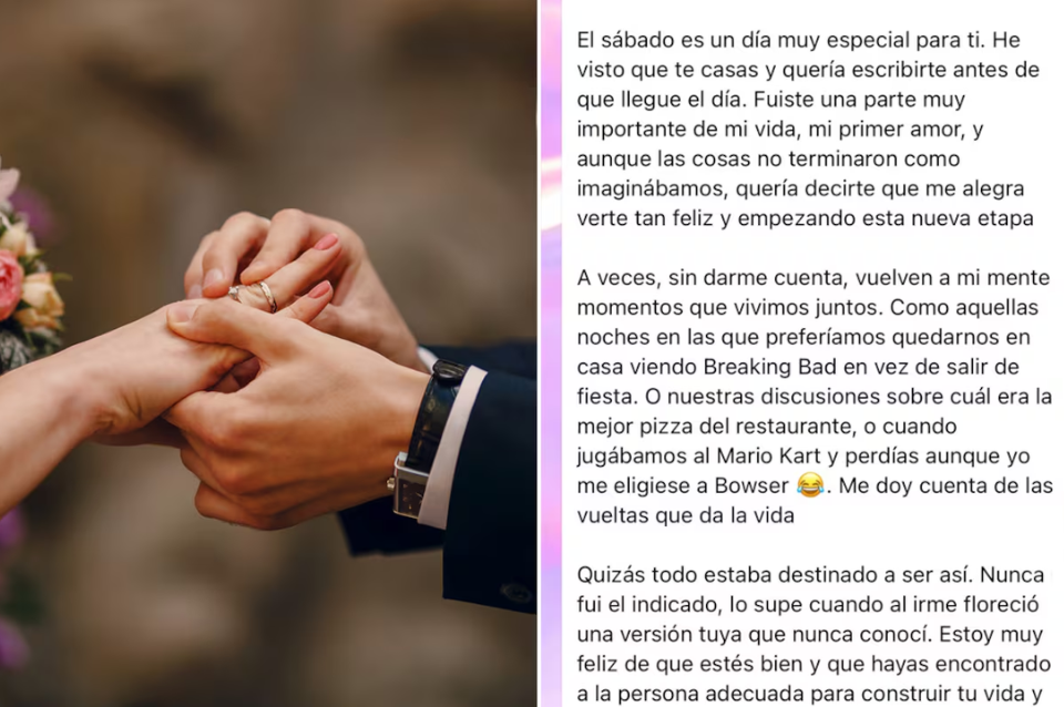 "Hola Laura, el sábado es un día especial para ti. He visto que te casas y quería escribirte antes de que llegue el día", comenzó el mensaje. "Fuiste una parte muy importante de mi vida, mi primer amor y, aunque las cosas no terminaron como imaginábamos, quería decirte que me alegra verte tan feliz y empezando esta nueva etapa".