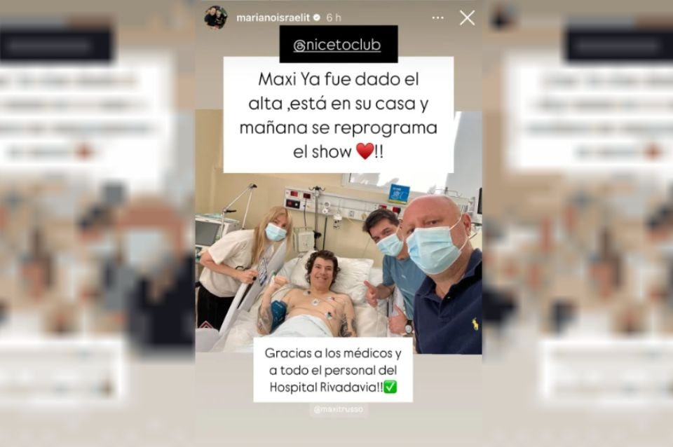 “Maxi ya fue dado el alta, está en su casa y mañana se reprograma el show!”, contó su manager Mariano Israelit, junto a una imagen del cantante en la camilla del hospital. Dependiendo la gravedad de la fractura, la recuperación podría llegar a ser entre 4 a 6 meses.