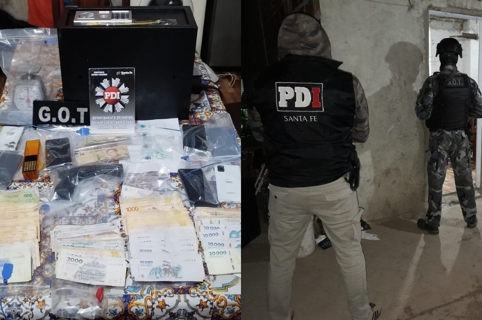 El operativo también permitió incautar casi cinco millones de pesos en efectivo, 20 dólares y cartuchos de calibre 22, lo que evidencia la complejidad y el nivel de organización del grupo delictivo investigado. Además, uno de los domicilios allanados contaba con un sofisticado sistema de videovigilancia.