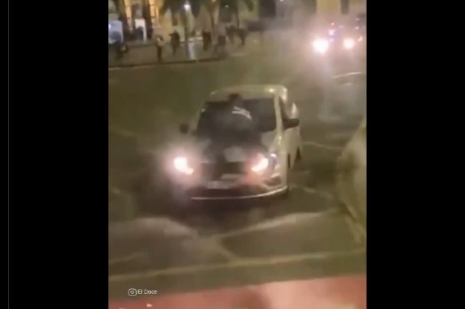 Según puede verse en videos que circularon en las redes sociales de testigos que filmaron el episodio, el efectivo fue varias cuadras colgado del capot del auto hasta que cayó al pavimento sufriendo lesiones leves, de acuerdo a lo que constató el servicio del 107 que llegó al lugar.