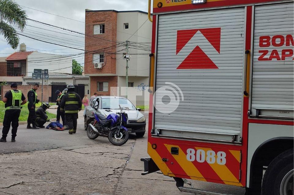Concretamente, alrededor de las 14:00, un motociclista embistió un automóvil en la intersección de Francia y Jujuy, y quedó atrapado entre su birrodado y el otro vehículo.