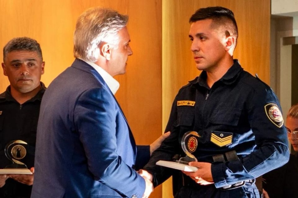 “Estamos aquí para reconocer públicamente el valor en el cumplimiento del deber y la prestación de servicios que hicieron ambos efectivos. Les agradecemos en nombre de los cordobeses por su entereza”, expresó Llaryora durante un acto en el Centro Cívico, acompañado por el ministro de Seguridad, Juan Pablo Quinteros; el ministro de Justicia y Trabajo, Julián López; y el subjefe de Policía, Marcelo Marín.