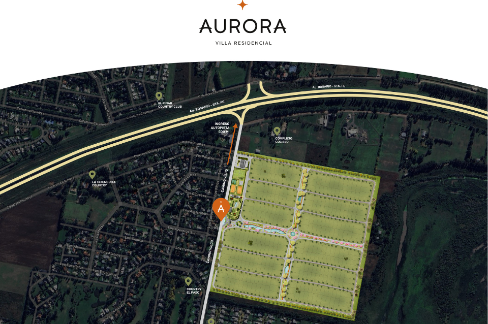 Aurora es una propuesta que invita a vivir en conexión con la naturaleza, sin resignar accesibilidad ni servicios. Ofrece lotes de entre 700 y 1000 m2 destinados a viviendas unifamiliares, todos con vistas a espacios verdes gracias a un sistema de parques lineales.