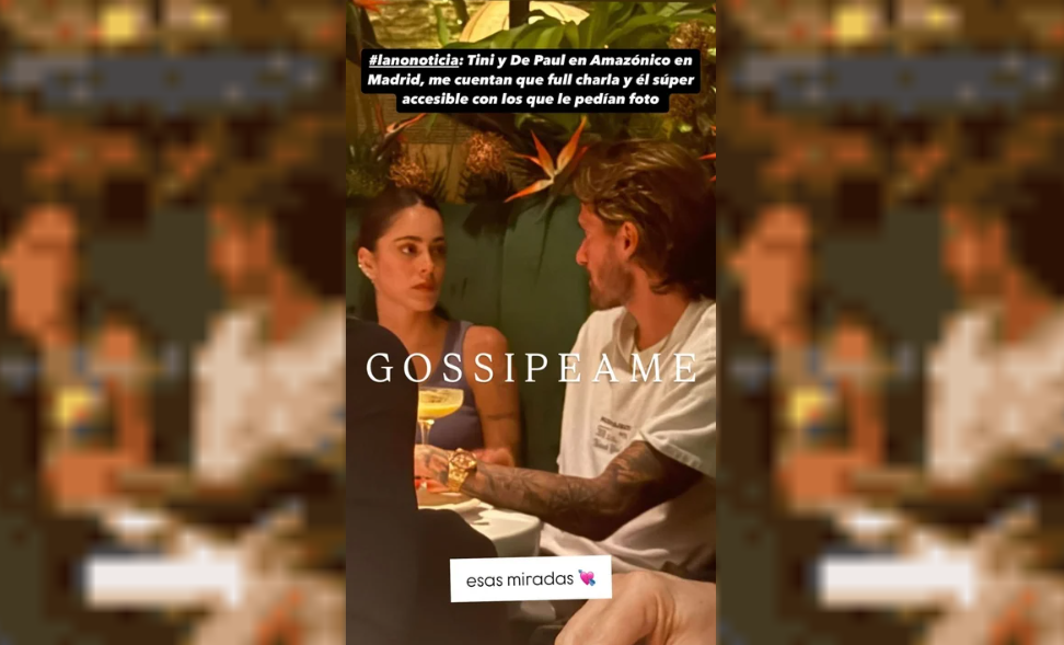 Durante la noche del jueves, la cantante y el futbolista fueron captados disfrutando de una cena en un restaurante que se especializa en comida selvática, mediterránea y asiática: “Tini y De Paul en Amazónico en Madrid. Me cuentas que full charla y él super accesible con los que le pedían foto”.
