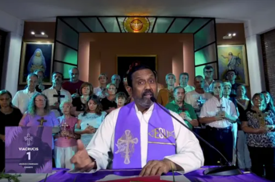Si bien la iglesia que el padre Ignacio conduce hace más de 45 años abrió las puertas a sus fieles y este Viernes Santo desarrolló, de manera virtual, su habitual Vía Crucis para conmemorar el camino que realizó Jesús luego de ser condenado a muerte fue virtual. Con un despliegue de producción muy cuidado y trabajado, el sacerdote estuvo acompañado de colaboradores, grabaciones de solistas, dúos y grupos musicales en cada estación mientras varias cámaras que le daban profesionalismo a la transmisión.