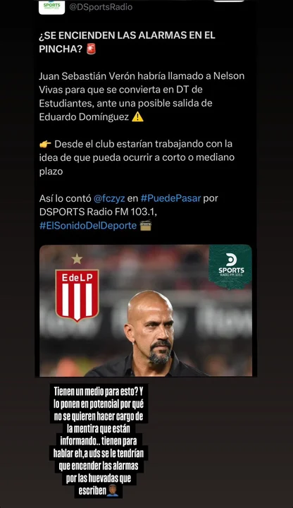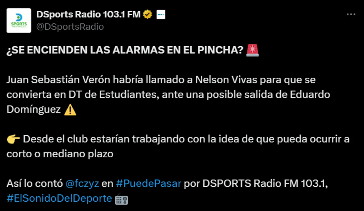 Durante la tarde-noche del día de hoy, en un programa del medio DSports Radio había surgido la noticia de que Verón temía la renuncia de su director técnico, Eduardo Domínguez, quien alzó la Copa Argentina 2023, la Copa de la Liga 2024 y el Trofeo de Campeones 2023 con el equipo platense, pero ganó sólo dos de sus últimos 10 partidos y todavía no aseguró la clasificación de Estudiantes a la fase final del Torneo Apertura.