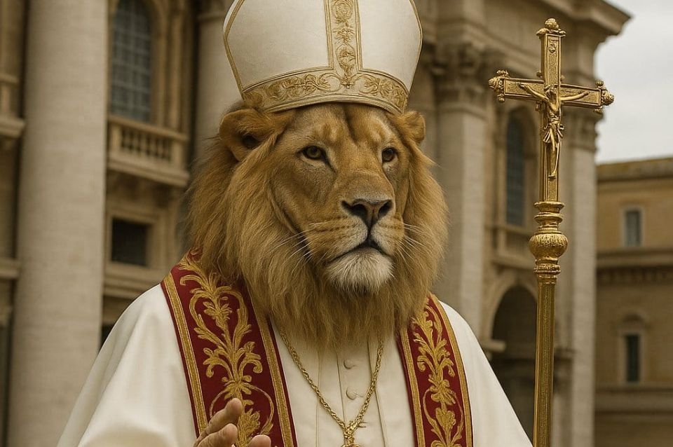 La imagen hace alusión al nuevo papa León XIV, nombre elegido por el cardenal estadounidense Robert Francis Prevost, recientemente proclamado sucesor de Francisco tras la fumata blanca desde la Capilla Sixtina.