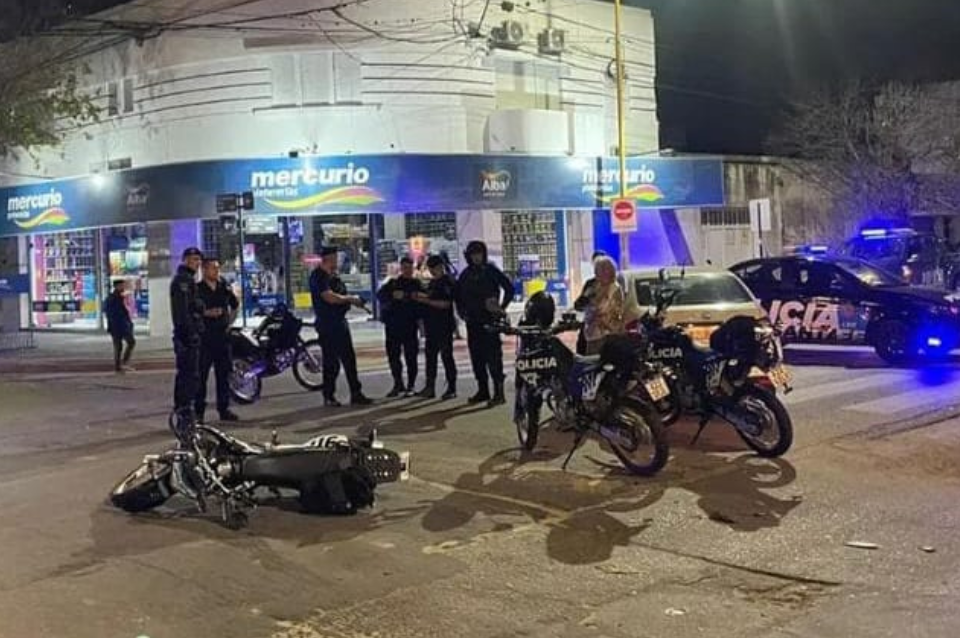 Al llegar a la intersección de Av. Freyre y Salvador Caputo colisionó con un vehículo y terminó en el asfalto.