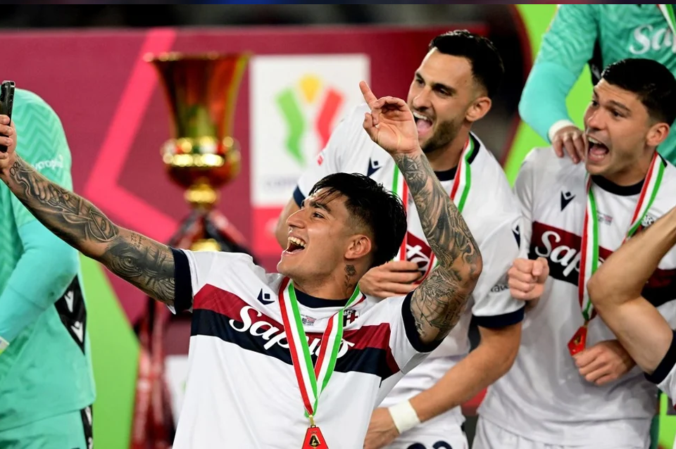 En el video, el jugador del Bologna se mostró con la remera y la medalla de campeón del certamen europeo. “Bueno así vamos a jugar. Nos hemos visto, chau. Fuerza Bologna “, manifestó Santiago Tomás Castro a los gritos.