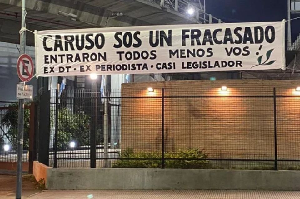 En los mismos puede leerse el título “Caruso sos un fracasado”, con la bajada “entraron todos menos vos” (a la Legislatura porteña). Ambos carteles cierran con la frase “ex DT, ex periodista, casi legislador”.