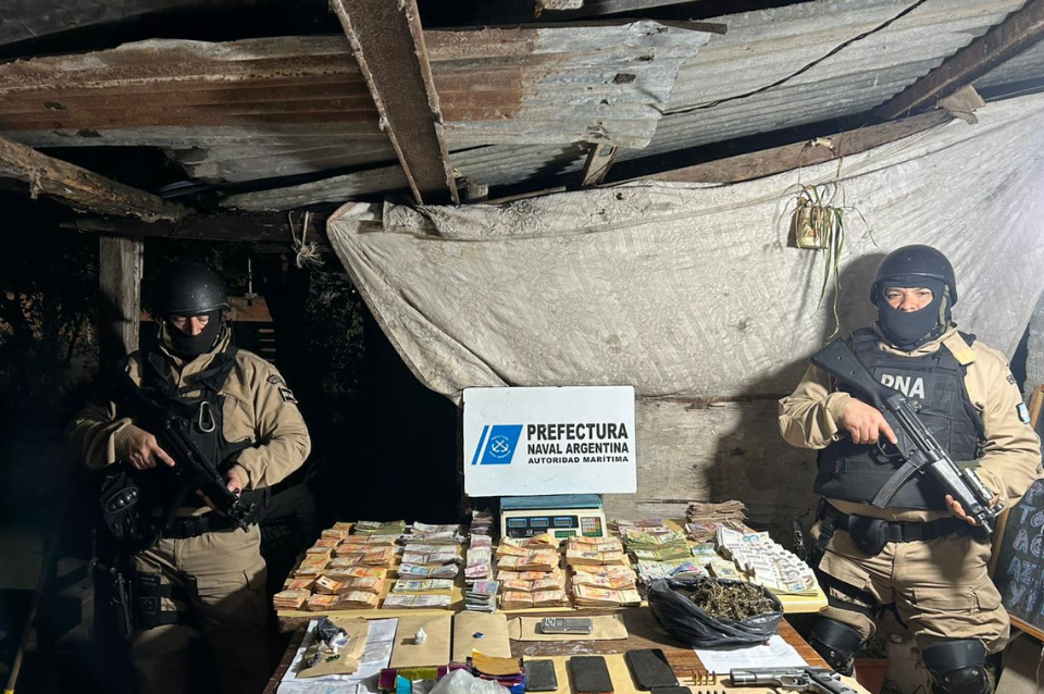 Cabe destacar que las tareas de campo fueron llevadas adelante por personal de la Delegación de Inteligencia Criminal e Investigaciones de la Prefectura Santa Fe (PNA). Los allanamientos culminaron con el secuestro de marihuana y cocaina, además de doce cartuchos de arma de fuego, una balanza de presicion, elementos de corte para la droga, envoltorios de papel satinado, seis teléfonos celulares, y más de siete millones de pesos.