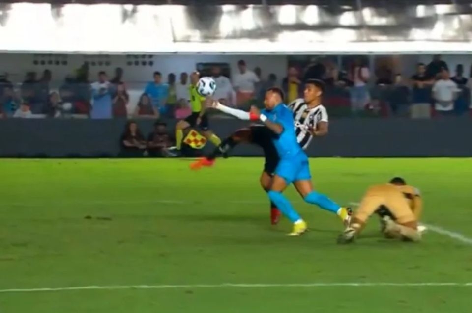 Neymar vio la tarjeta roja luego de una insólita mano en el área a los 30 minutos del segundo tiempo del partido ante Botafogo, equipo que finalmente se quedó con el triunfo gracias al gol de Artur a falta de solo cinco minutos para el final del encuentro.