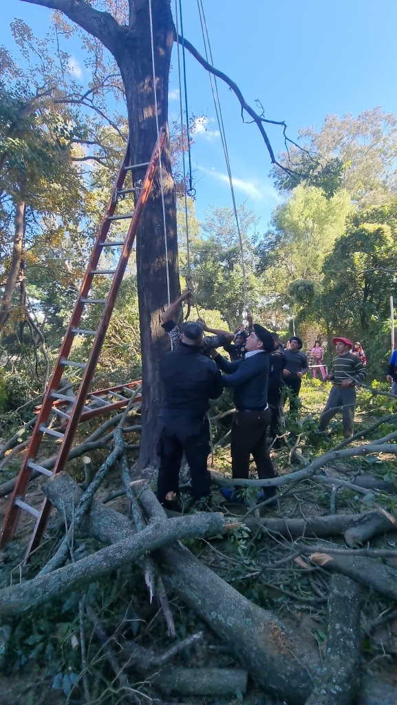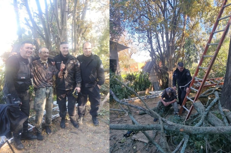Sucedió este miércoles 4 pasadas las 13:15 hs, en inmediaciones de la manzana 10 del Barrio la Boca, en Alto Verde. Los agentes fueron alertados de la situación y se desplazaron rápidamente hasta el lugar, donde encontraron al hombre colgando de una de sus piernas entre las ramas de un árbol de aproximadamente 10 metros de altura.