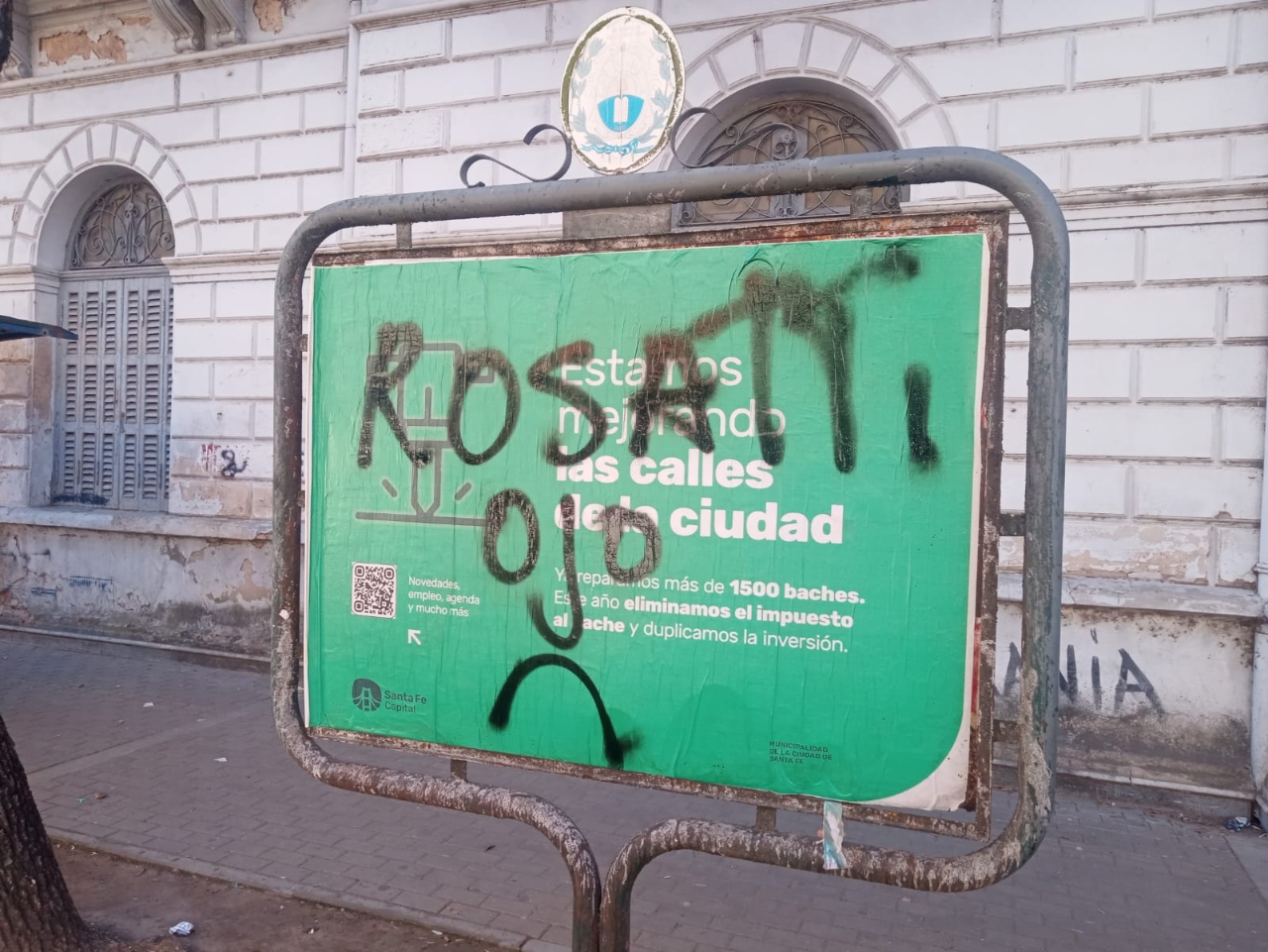 En tanto que pintadas en las paredes y vandalismo en carteles en la vía pública se multiplicaron con “Rosatti ojo”. Un mensaje dirigido al santafesino Horacio Rosatti, presidente de la Corte Suprema de Justicia de la Nación. La seccional décima del Partido Justicialista admitió la autoría de las pintadas que se realizaron en distintos puntos de la ciudad.