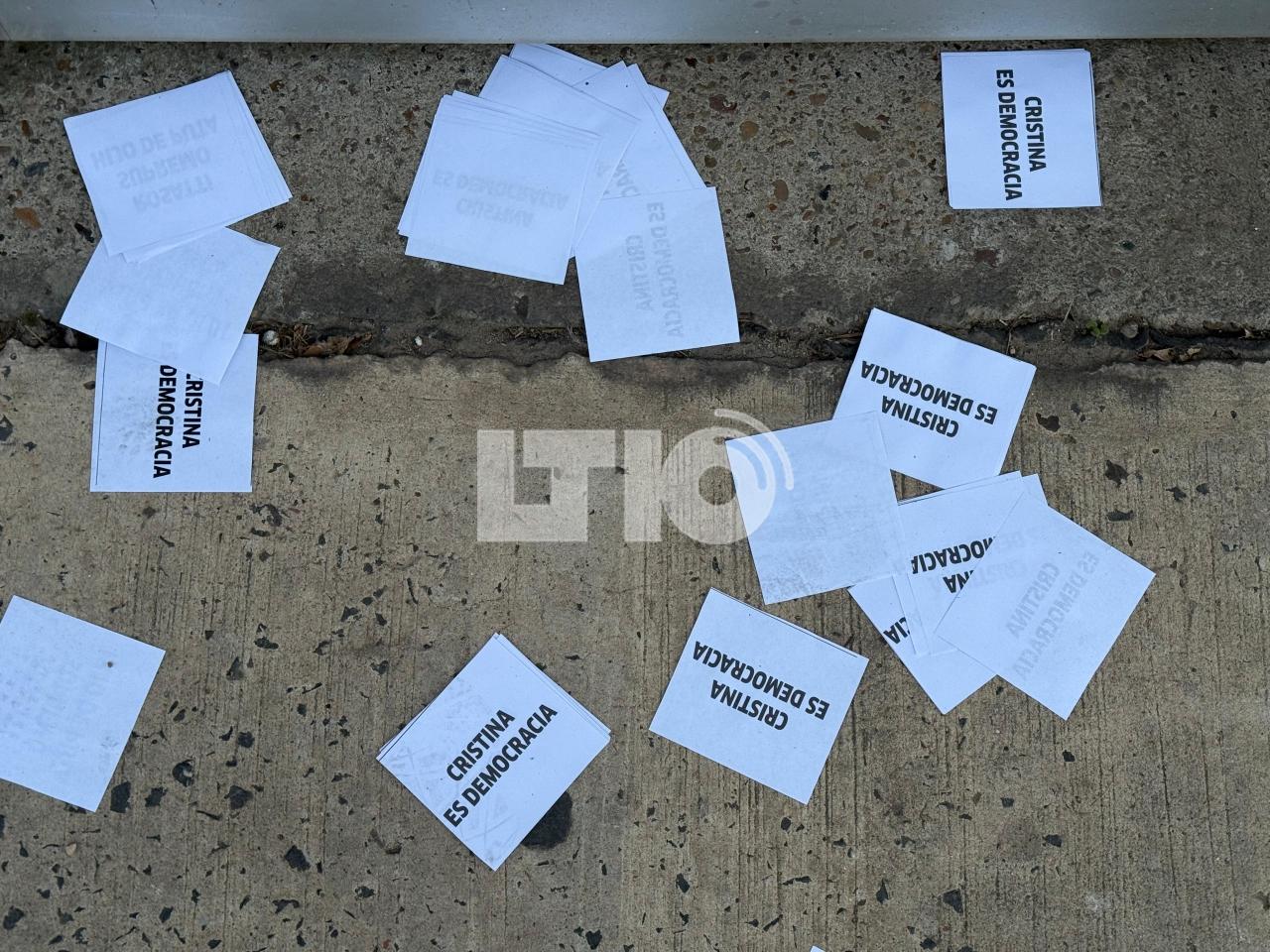 El miércoles amaneció con panfletos a favor de Cristina Fernández de Kirchner en las puertas de distintos medios de comunicación de la ciudad de Santa Fe.