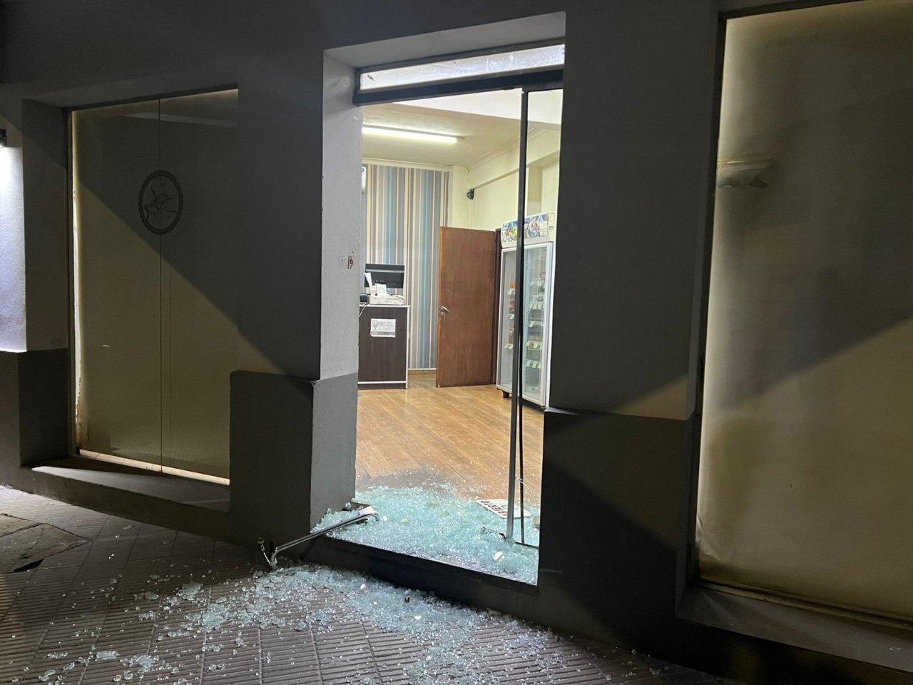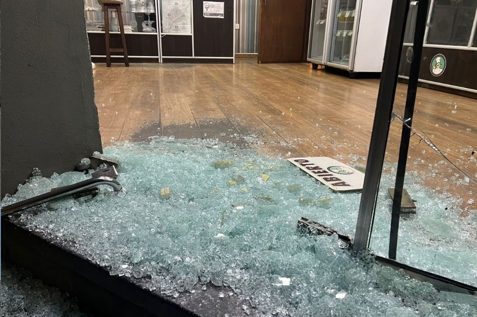 Para ingresar, utilizó un elemento contundente y rompió un gran panel de blíndex.