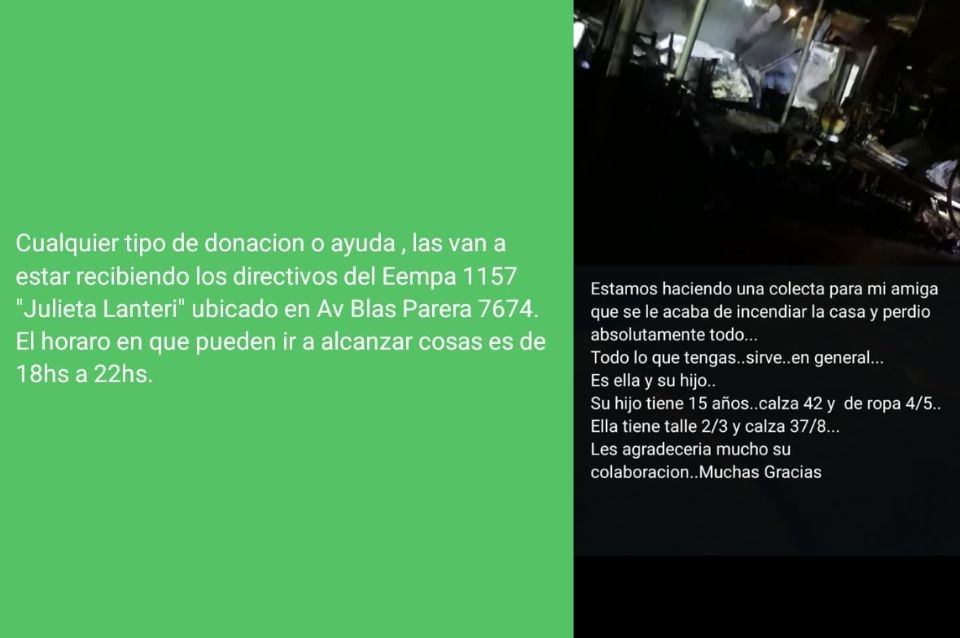 Sucedió en Ayacucho al 3700, donde Andrea contó que dejó “encendido un caloventor porque tenía las mascotitas” y esto habría causado el incendio: “La casa ya era de madera, con cielo raso de telgopor. No quedó nada. Yo estaba justo cursando el EMPA, y los vecinos hicieron lo que pudieron, y vinieron los bomberos rápidos, pero no pudieron hacer nada”.