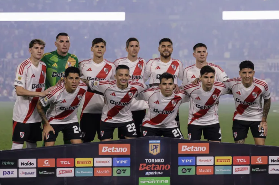 River: Franco Armani; Gonzalo Montiel, Lucas Martínez Quarta, Paulo Díaz, Marcos Acuña; Ignacio Fernández, Enzo Pérez, Kevin Castaño; Franco Mastantuono, Sebastián Driussi y Facundo Colidio. DT: Marcelo Gallardo.