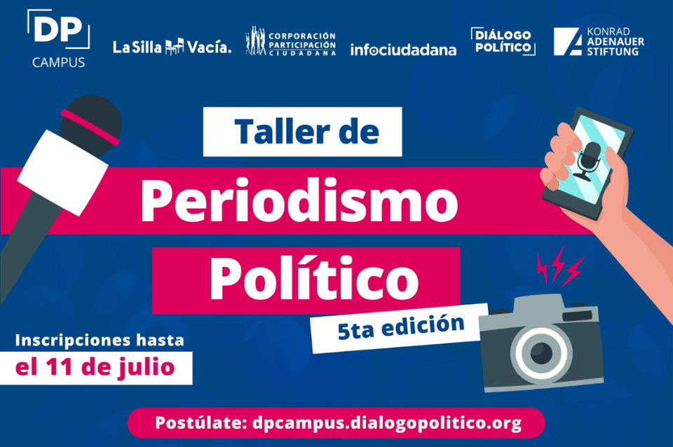 La Fundación Konrad Adenauer, en colaboración con Infociudadana (ARG), la ONG Participación Ciudadana (ECU) y La Silla Vacía (COL), además de la participación de Google News Initiative (GNI), anuncia el lanzamiento de la convocatoria para la quinta edición del Taller de Periodismo Político, por el que ya pasaron más de 250 periodistas de todo Hispanoamérica. Se otorgarán 50 becas completas.