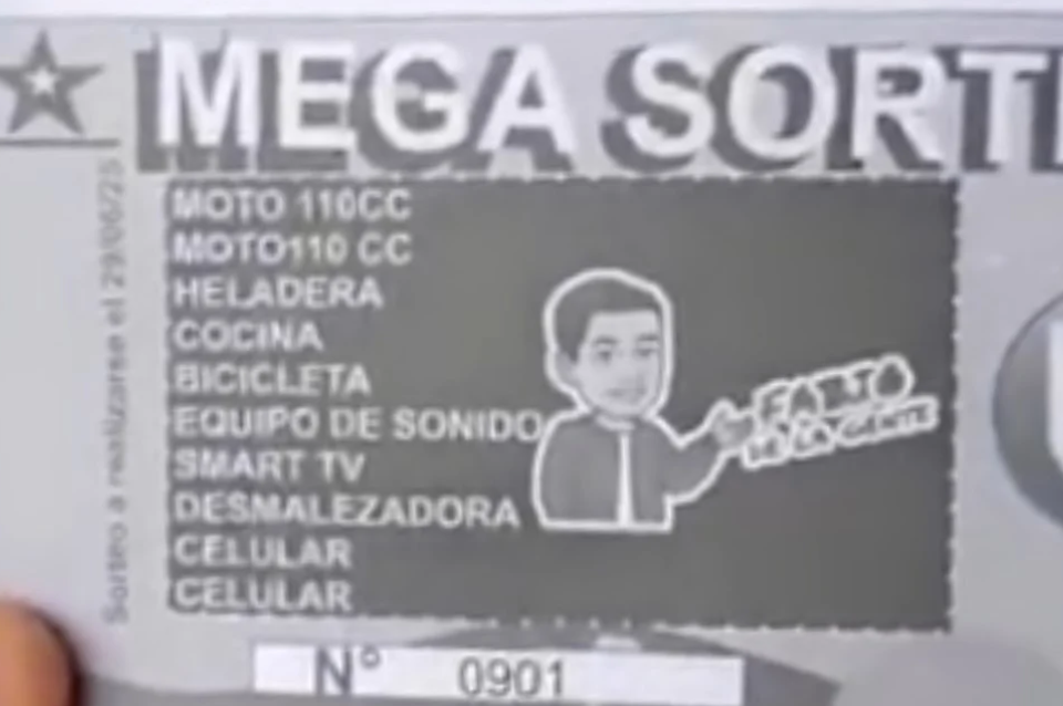 “Tenemos una gran noticia para mañana. Mañana es domingo, día de elecciones. Y te quiero contar lo que tenemos para sortear para festejar cuando ganemos”, dice Villa en el video. A su lado, asistentes enumeran: “Dos motos, una bici, una cocina, una heladera, un televisor, una motoguadaña y dos celulares”, y aclaran: “Esto se sortea si gana Fabio”.