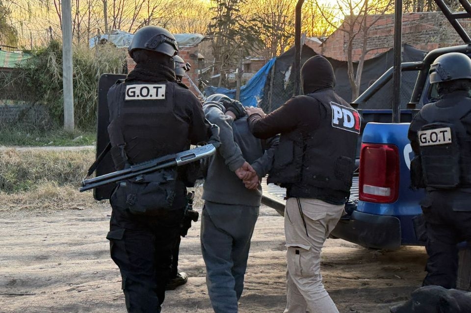 En los domicilios allanados se incautaron más de 215 gramos de cocaína fraccionados en más de 600 envoltorios, más de 524 gramos de marihuana, balanzas de precisión, tijeras, papeles satinados utilizados para el acondicionamiento de dosis, una carabina calibre .22, un revólver calibre .22 y más de un millón de pesos en efectivo.