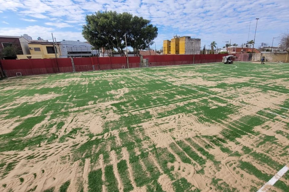Se realizó la sustitución de carpeta sintética por otra para la superficie que mide 60mts x 29mts aproximadamente.