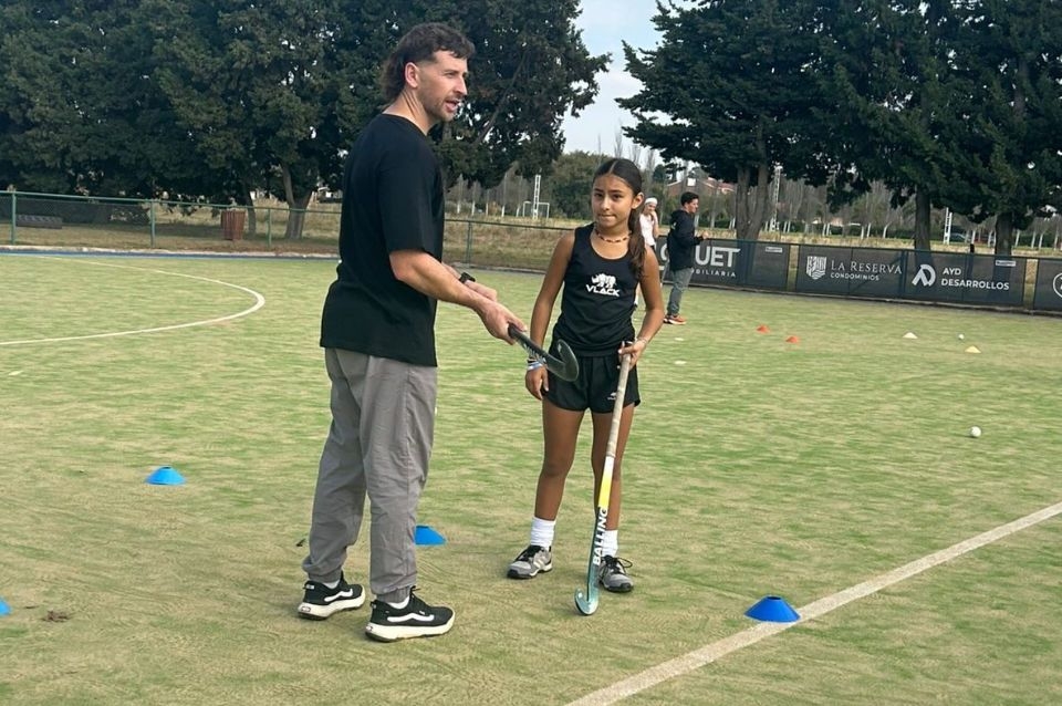 Ya en cancha, se trabajaron fundamentos técnicos como el push y sus variantes (convencional, arrastrado, golpeado, de asistencia), las barridas, el flick.