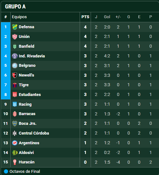 Repasá cómo quedó el tatengue en las tablas tras el empate con Boca