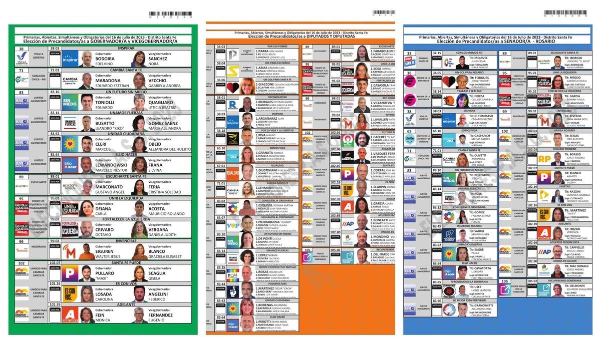 Por empezar la BUP "es horizontal", a diferencia de la boleta santafesina, que es vertical. Además, en nuestra provincia hay una boleta por categoría (gobernador, intendente, concejales, etc.), mientras que la nacional es literalmente única: una sola papeleta para todos los cargos.