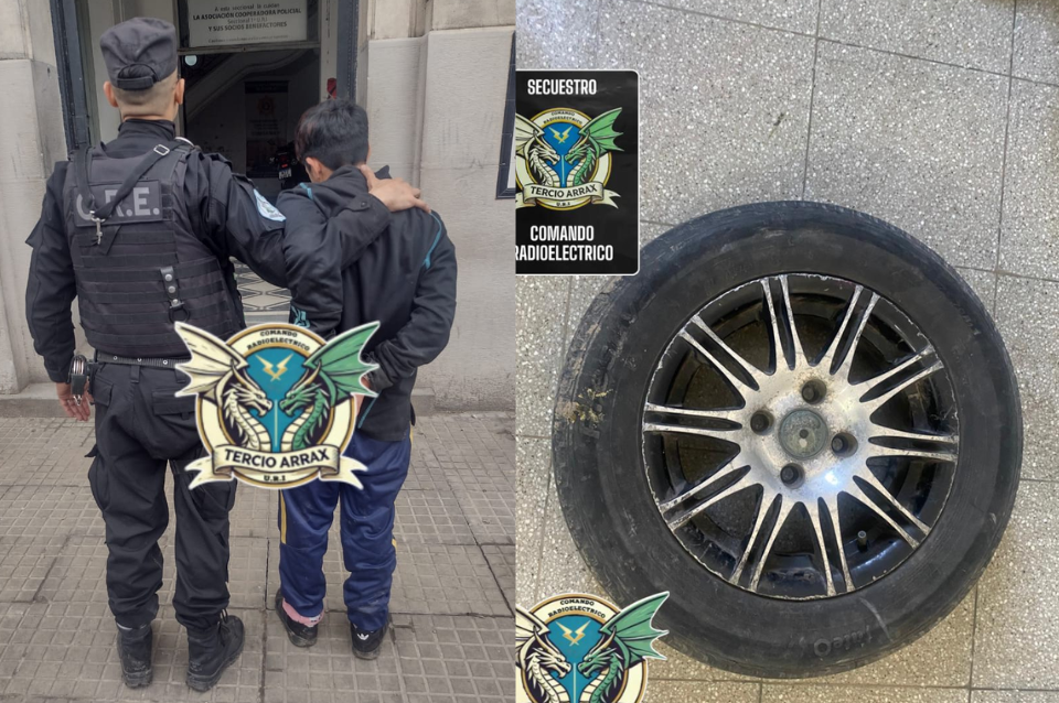 Los uniformados siguieron la pista señalada por la damnificada y llegaron hasta una vivienda cercana. Allí hallaron una de las ruedas sustraídas y procedieron a aprehender al sospechoso, quien fue trasladado a la Comisaría 1ª.