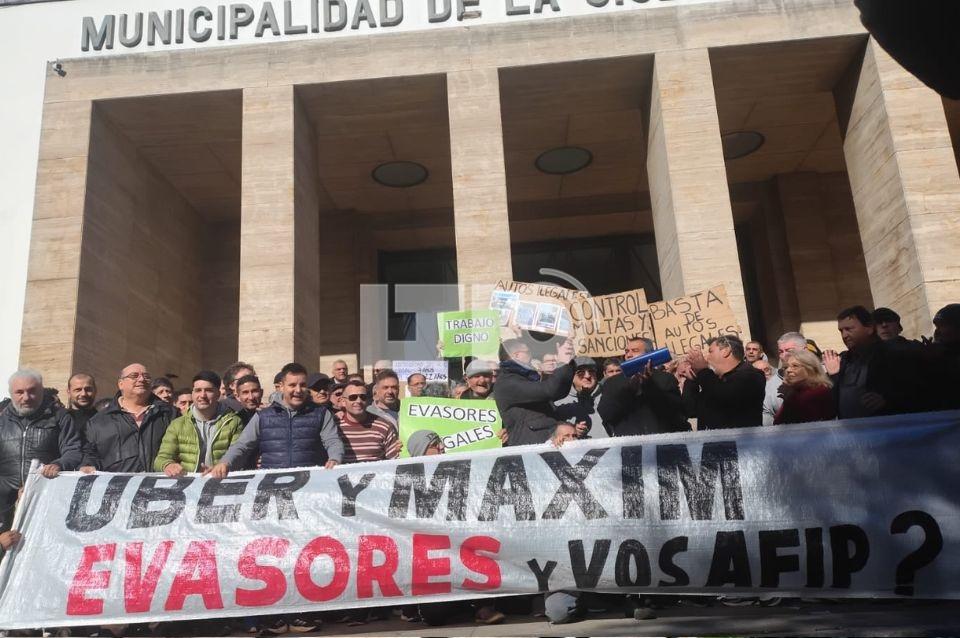 En este contexto, taxistas y remiseros se manifestaron en las inmediaciones de la Municipalidad de Santa Fe. Primero realizaron una caravana y luego se posicionaron en la explanada del Palacio Municipal.