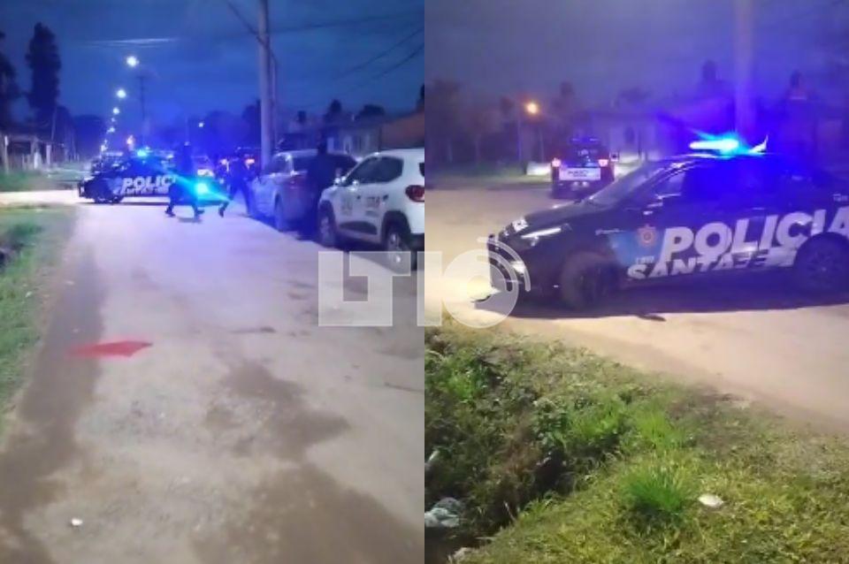 Se trataría de un oficial de policía, que desempeñaba sus labores en la Comisaría 16 de Recreo, que se encuentra en la puerta de la casa donde a simple vista observan que está armado.