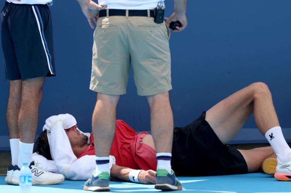 El jugador francés, número 70 del mundo en la actualidad, venía padeciendo las altas temperaturas, hasta que antes del inicio del quinto game del segundo set, al servicio Auger-Aliassime 2-2, se desplomó, preocupó a todos en el estadio y necesito de atención médica.