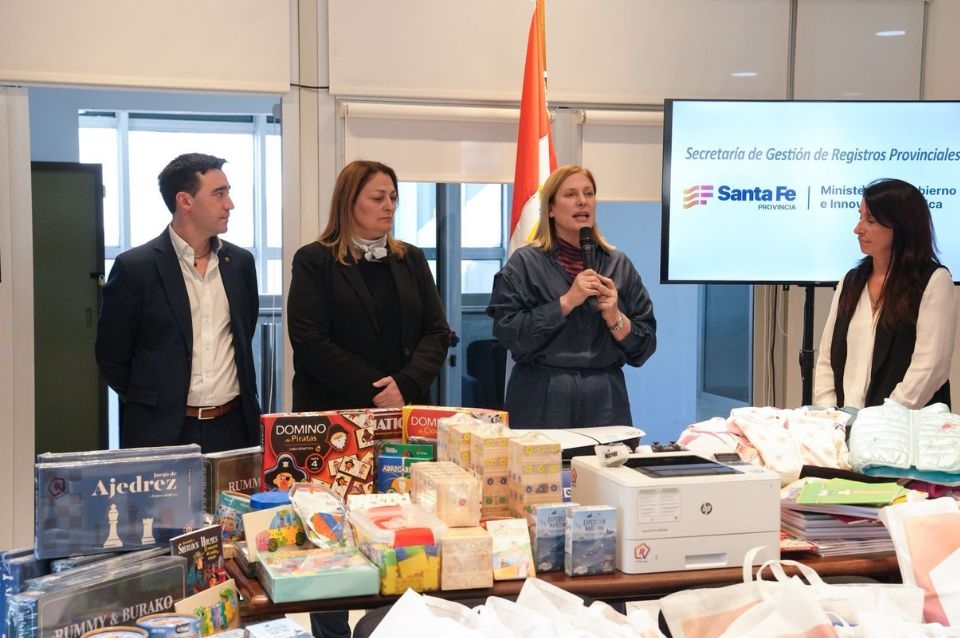 En la oportunidad, se entregó al efector 1 Play Station 5, 1 TV 50, juegos, regalos, impresora, estufas, ventiladores; kits escolares, ropa y juguetes: “Este es el primer hospital que recibe este tipo de donaciones, que compramos con parte de la plata de las subastas públicas que hace Aprad, y de los bienes que se le secuestró a los delincuentes; y por decisión del gobernador Maximiliano Pullaro hacemos que estas cosas vuelvan a la sociedad”, detalló Figueroa Escauriza.