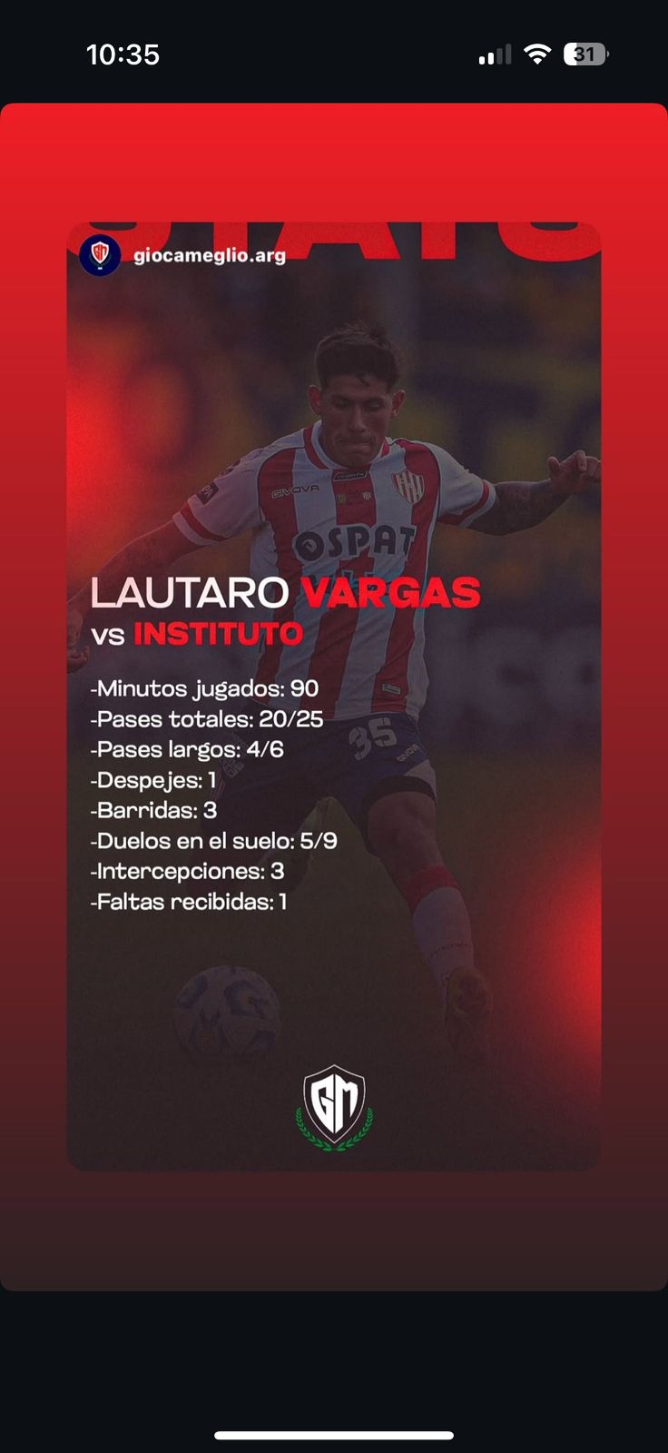 Por su parte, Fútbol Scan destacó que Vargas fue el jugador con más recuperaciones del partido (8) y que no fue gambeteado en ningún momento, consolidándose como un verdadero muro en el mediocampo.