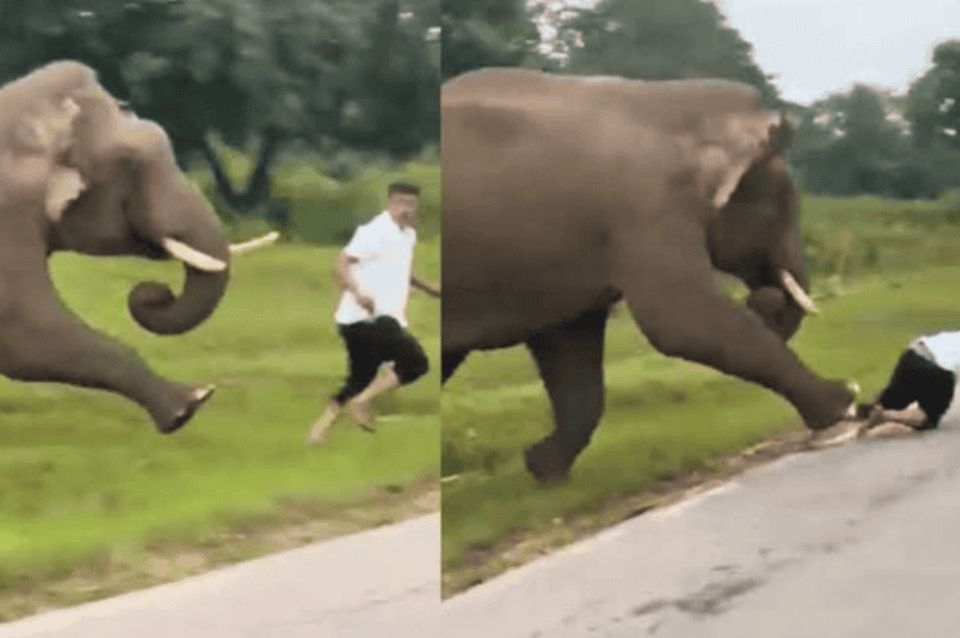Un hombre sobrevivió después de ser atacado por un elefante en el suroeste de la India cuando intentó tomarse una foto con el animal y todo quedó grabado en video