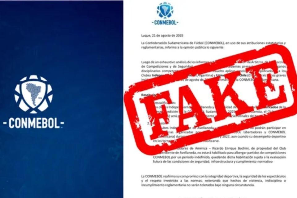 Comunicado falso: Fuentes de la Conmebol confirmaron que el documento que circuló no es oficial y su contenido es falso.