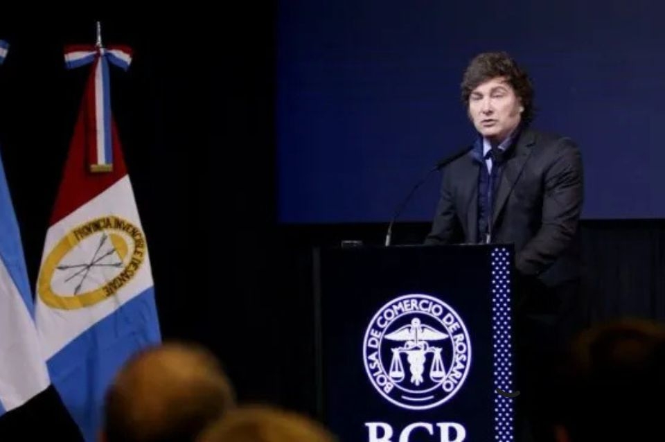 Una vez más, Javier Milei se presentó en la Bolsa de Comercio de Rosario, en donde protagonizó el discurso central de la ceremonia por el 141° aniversario del organismo. En un auditorio a oscuras, el Presidente de la Nación eligió referirse a las últimas decisiones de la política monetaria de su gestión. Su comitiva estuvo compuesta por Karina Milei, Luis Caputo y Manuel Adorni.