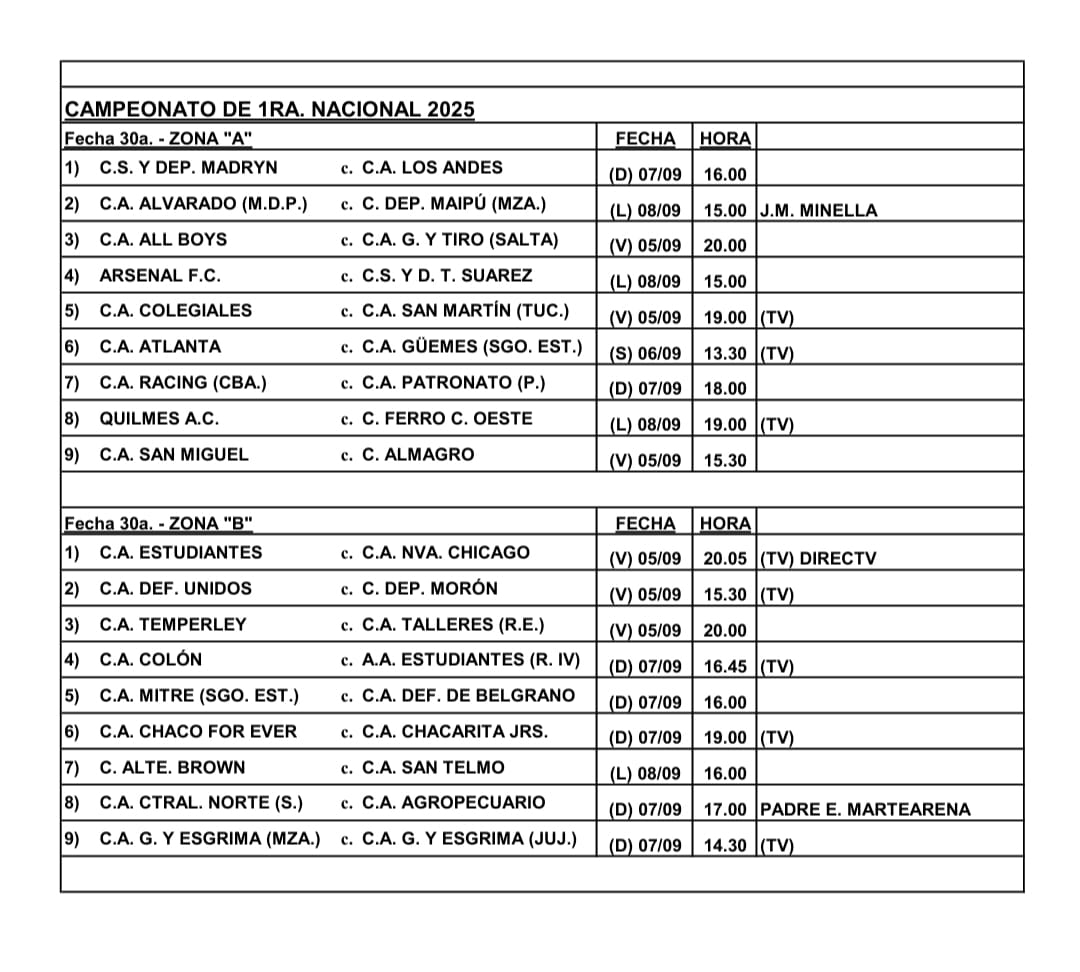 Mientras tanto, la Asociación del Fútbol Argentino confirmó la programación del partido siguiente: por la jornada 30, Colón recibirá a Estudiantes de Río Cuarto. El encuentro se disputará el domingo 7 de septiembre, a las 16.45, en el estadio Brigadier López.