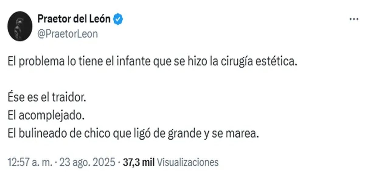 El escándalo estalló cuando la cuenta "@PraetorLeon", atribuida al riojano, publicó un mensaje que replicaba exactamente su agenda televisiva, generando sospechas de que Menem había cometido un error y había tuiteado desde su perfil falso.