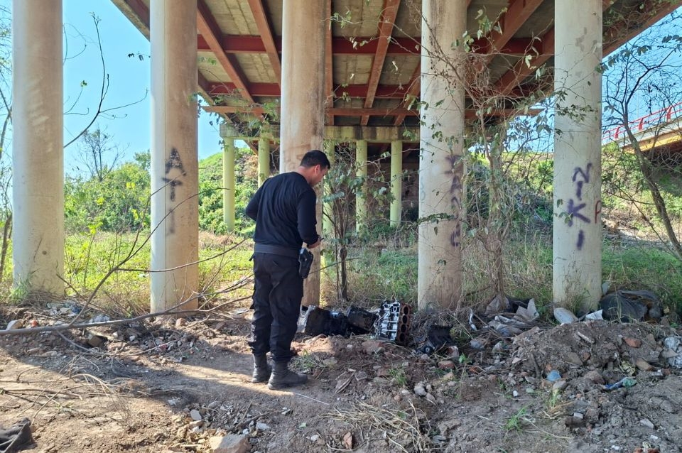 Durante un patrullaje para prevenir ilícitos, la policía encontró cuatro blocks de motores de autos debajo de un puente de la Autopista Santa Fe - Rosario.
